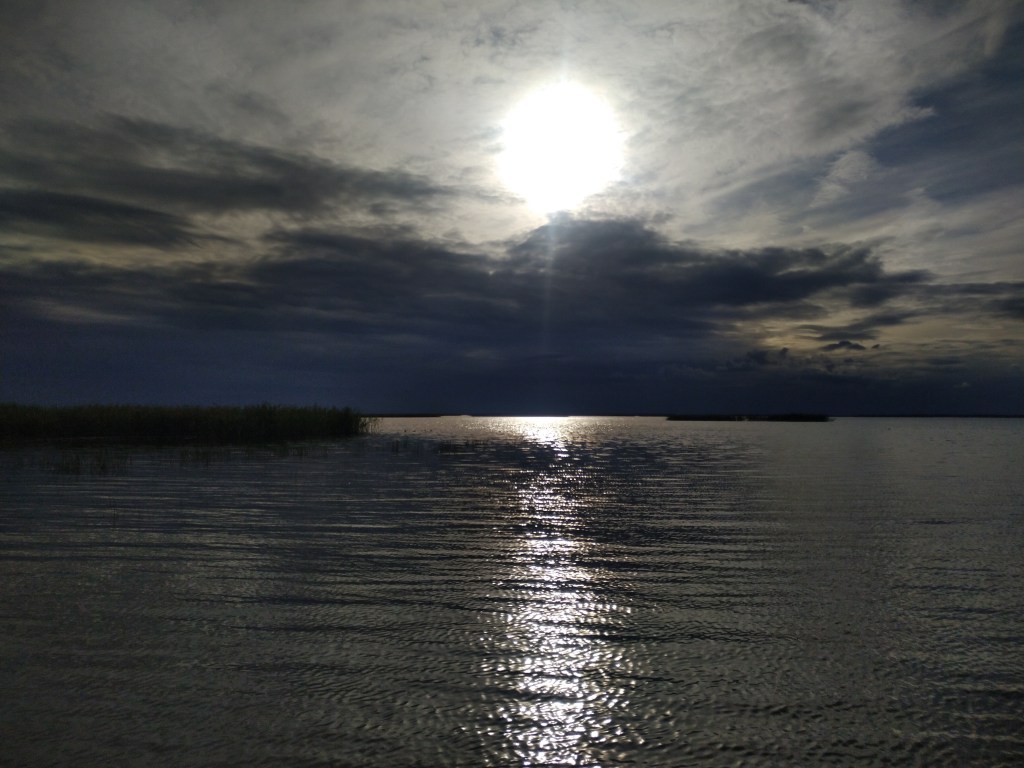 Sun slowly setting over lake Lubāns in Latvia. Photo by Beach Books.