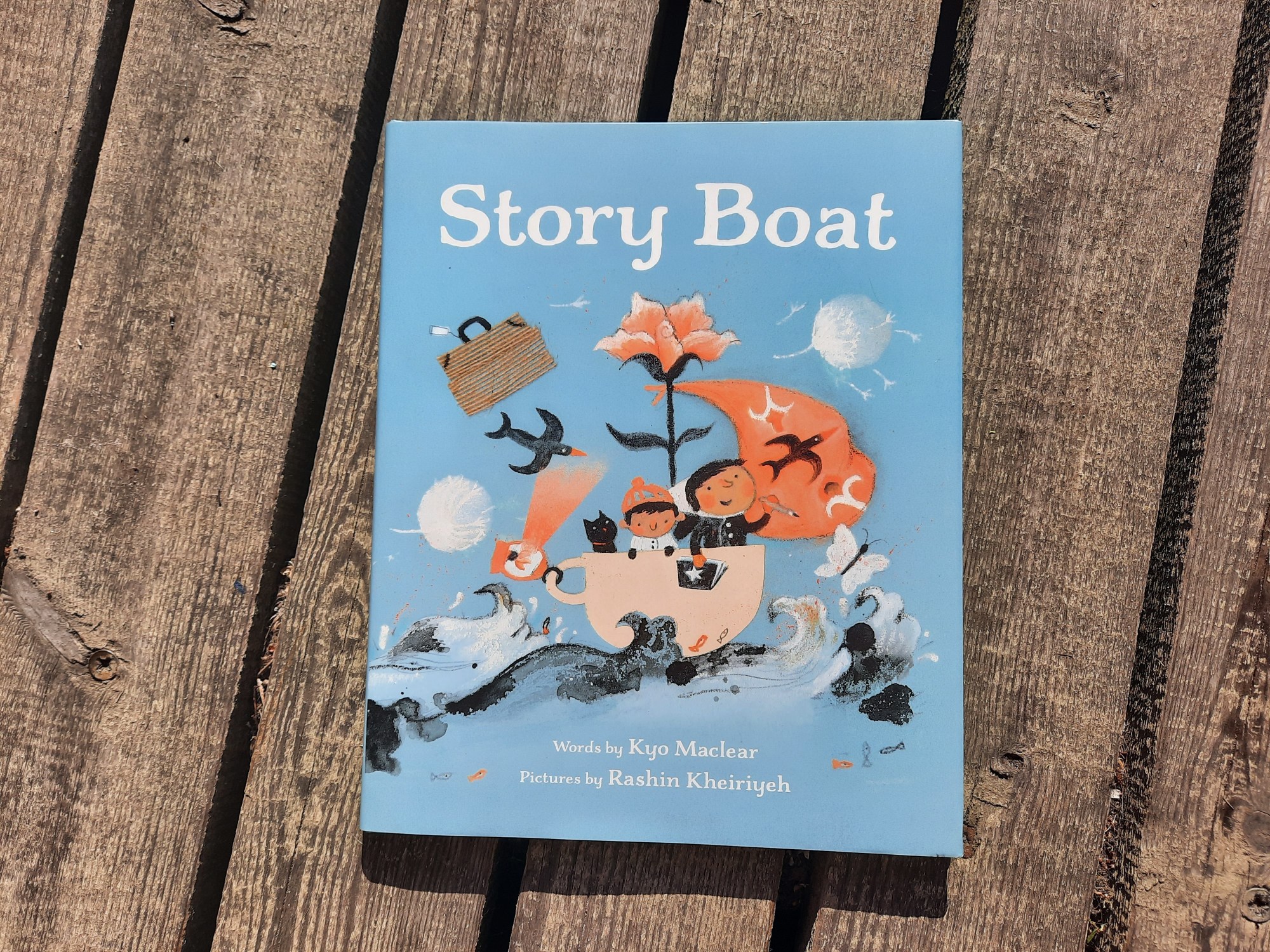 Kyo Maclear “Story Boat”. Illustrated by Rashin Kheiriyeh. Published by Tundra in 2020. Bought by me for the Sea Library thanks to woven bookmarks that I once sold 💙