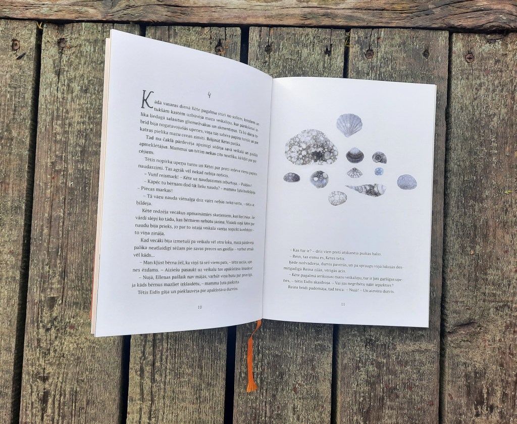 “Laiva peldēja, jūra to šūpoja, un Kēte drīz vien aizmiga, galvu mammai klēpī ielikusi.”