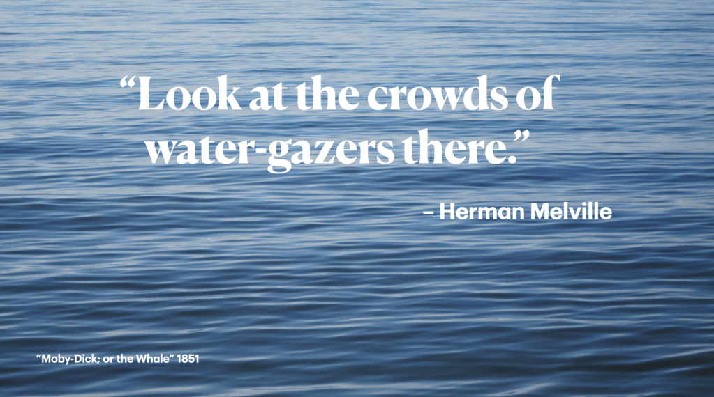 How did it all start? I blame the sea. It put a spell on me. Ever since I started to live here it made me curious. What will it look like tomorrow? I kept coming back. I noticed other water-gazers doing the same. Arriving at the beach, standing where the land runs out and looking at the big blue sea. “But look! here come more crowds,” writes Herman Melville in “Moby-Dick”, “pacing straight for the water, and seemingly bound for a dive. Strange! Nothing will content them but the extremest limit of the land; … They must get just as nigh the water as they possibly can without falling in. And there they stand…”