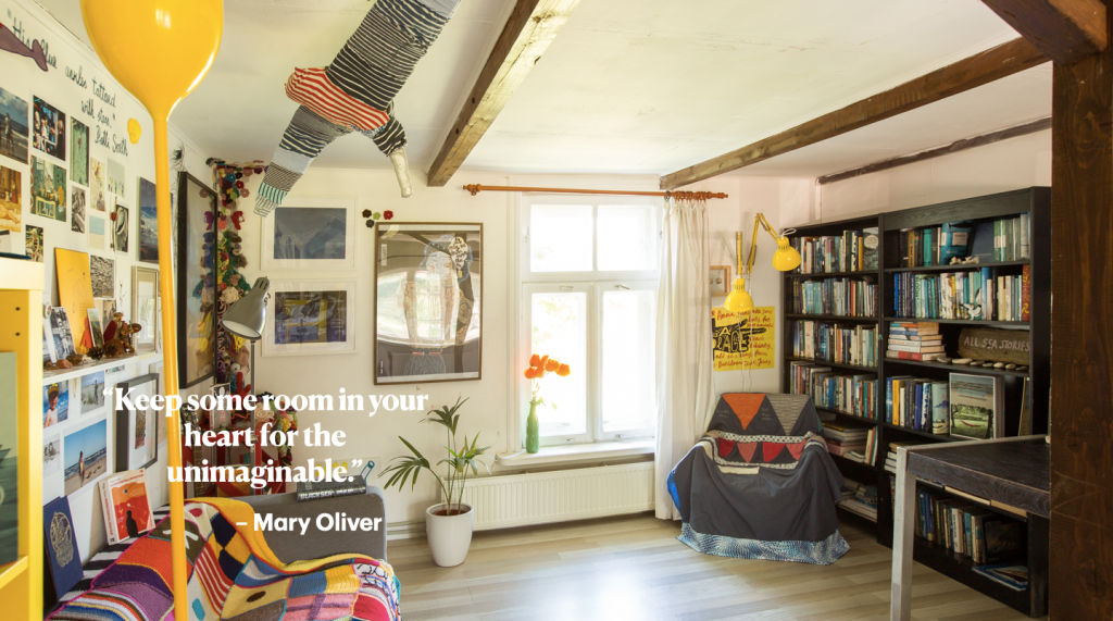 “Keep some room in your heart for the unimaginable,” wrote poet Mary Oliver who lived by the sea. In the beginning, there was a room in this house with no purpose. For a while it was a bedroom, for a while it was my eldest son’s room, but the furniture kept floating around the house and this room kept losing its name. When I left my job and started to walk to the sea every day, I started to buy books about it. It’s here where I kept them. In a room with no name.