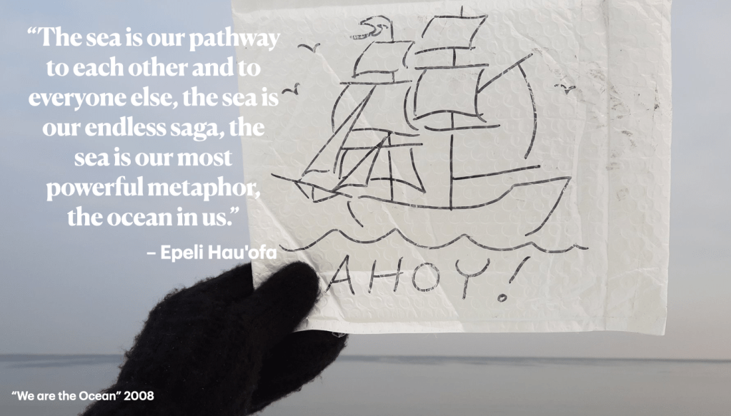 As Tongan and Fijian writer and anthropologist Epeli Hau’ofa wrote, “The sea is our pathway to each other and to everyone else, the sea is our endless saga, the sea is our most powerful metaphor, the ocean in us.“