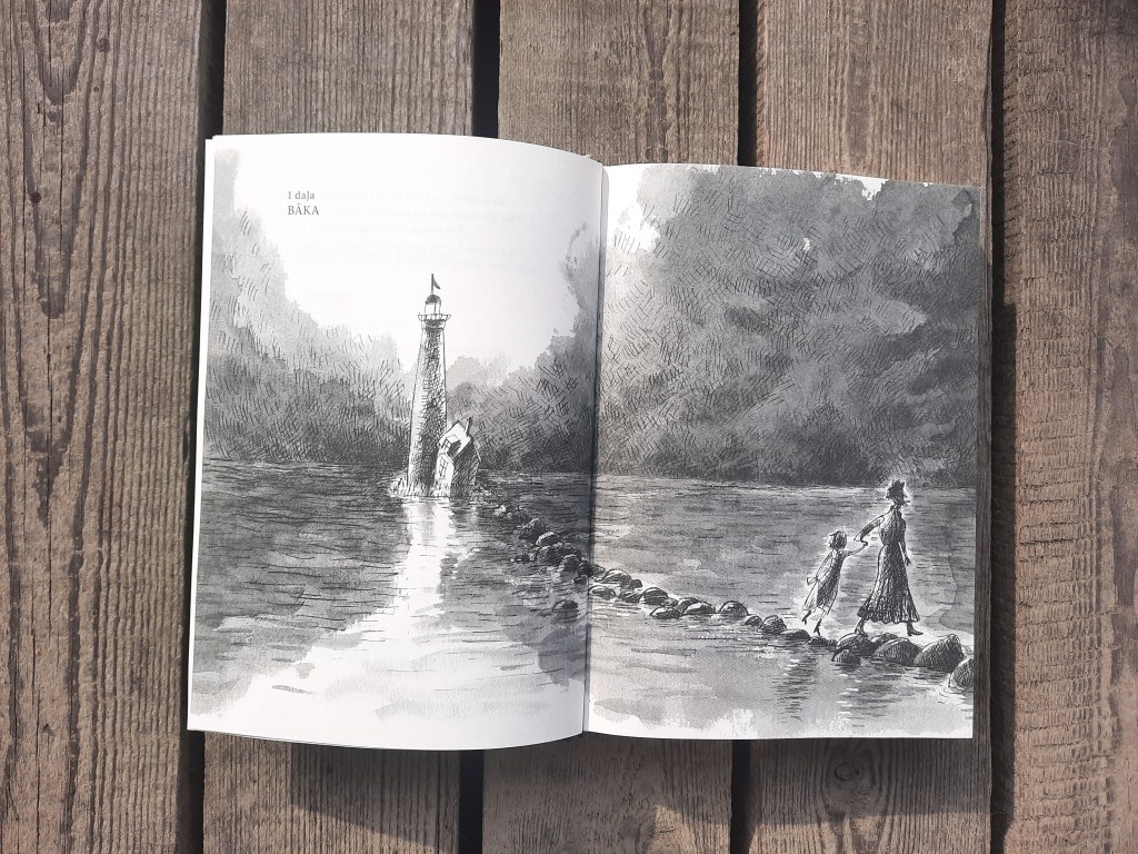 Šis ir stāsts par jūru. Par noslēpumainām radībām un mežonīgiem jūras laupītājiem. Par admirāļa Melno namu, kurā, kā stāsta, mājo briesmonis. Par pelēku bāku uz mazas saliņas jūrā un par Lampiņu, bākas uzrauga meitu, kas katru vakaru kāpj sešdesmit vienu pakāpienu augšā bākas tornī, lai iedegtu gaismu. Par kādu vētrainu nakti, kad ir izbeigušies sērkociņi un viss noiet greizi. Taču galvenokārt par drosmi un spēju paveikt vairāk, nekā jebkad no sevis esi gaidījis.