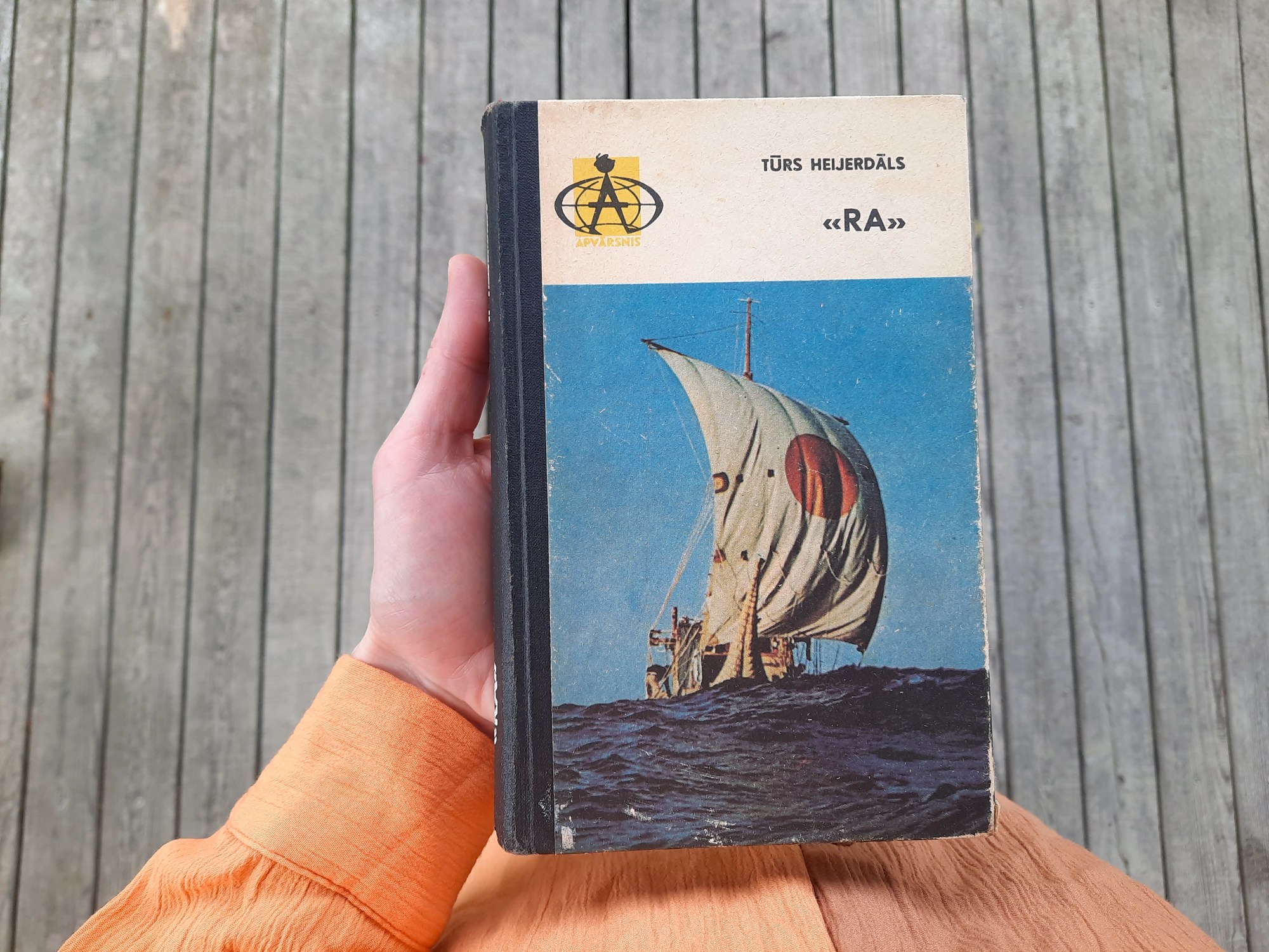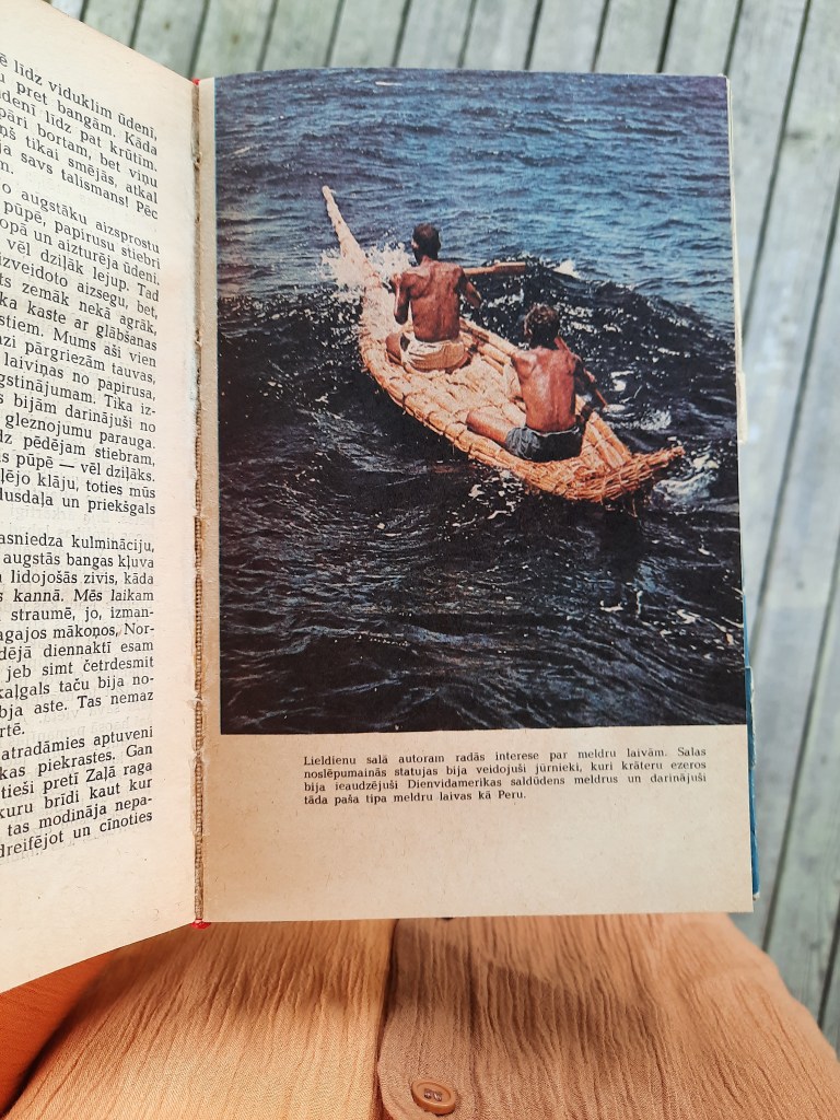 Heijerdāls, Tūrs. “Ra”. Oriģinālā izdota 1970. gadā. No norvēģu valodas tulkojusi Elija Kliene. Izdevniecības “Zinātne” sērījā “Apvārsnis” izdota 1974. gadā. Paņemu no vecu grāmatu kaudzes Slokas pasta nodaļas priekštelpā.