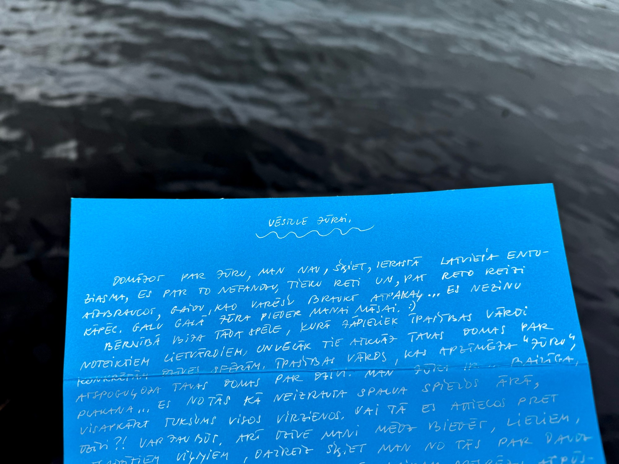 Maijā es izsūtīju aicinājumu jūras kopienām visā pasaulē: Uzraksti vēstuli jūrai. Ceturtā vēstule ir pienākusi 2025. gada 10. jūnijā – to raksta Katrīna Ģelze no Rīgas, Latvijas. Katrīna ir mana māsa un arī šīs iniciatīvas pastkartes autore.