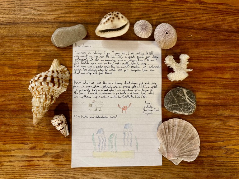 On November 19 I received 29 letters from Shoreham Beach Primary School in Shoreham, UK. A very special thanks goes to Jackie Verrall for spreading the word, and to the children’s teacher, Adam Joseph, for steering the ship of letters toward the Sea Library. (Check this out!)